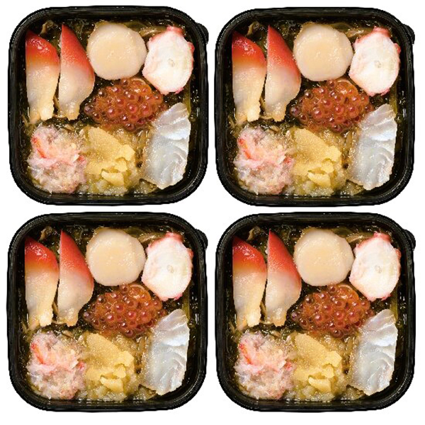 内容:海鮮松前漬(帆立・ヒラメ・ホッキ貝・ズワイガニむき身・タコ・味付数の子・いくら醤油漬)100g×4