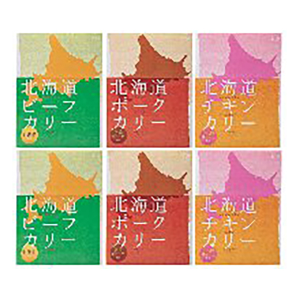内容:北海道十勝牛のビーフカリー・北海道産阿寒豚のポークカリー・北海道中札内鶏のチキンカリー各200g×2