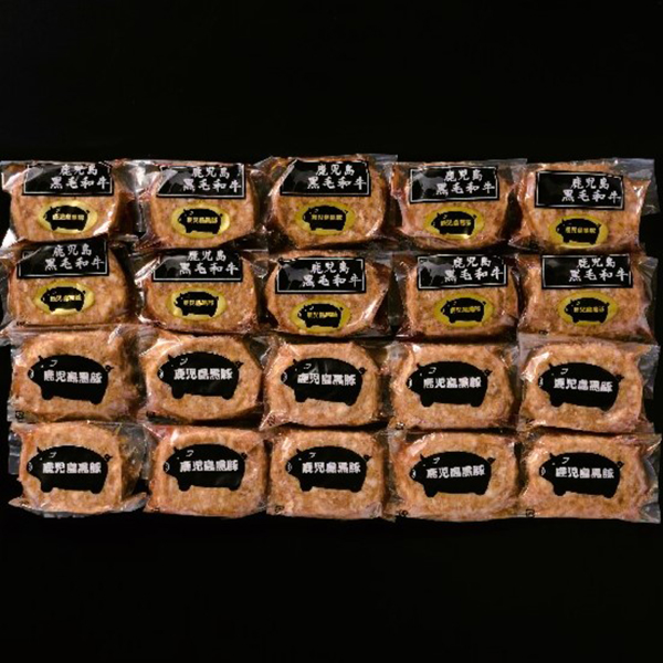 内容:黒毛和牛黒豚ミックス生ハンバーグ80g×10、黒豚ミニハンバーグ80g×10