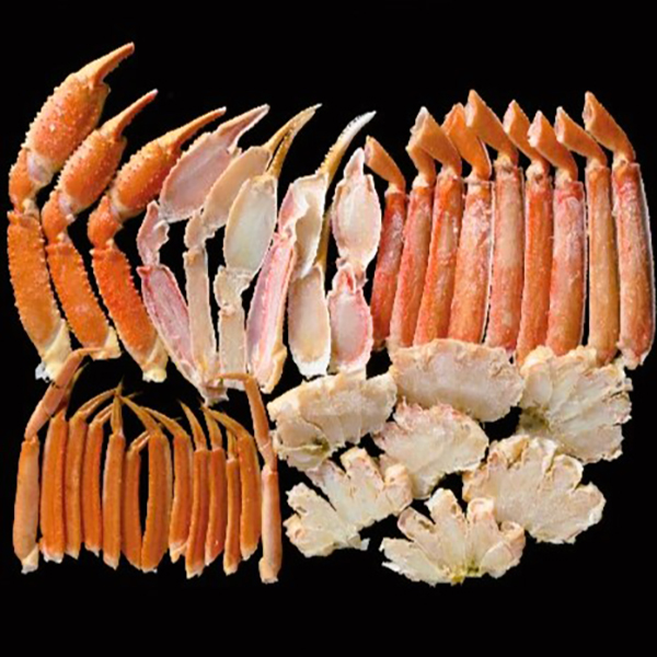 ボイルしたずわいがにを殻の上半分だけを取り除いた半剥き身にしていますので、解凍後にそのままお召し上がりいただけます。4つの部位を詰合わせでお届けします。