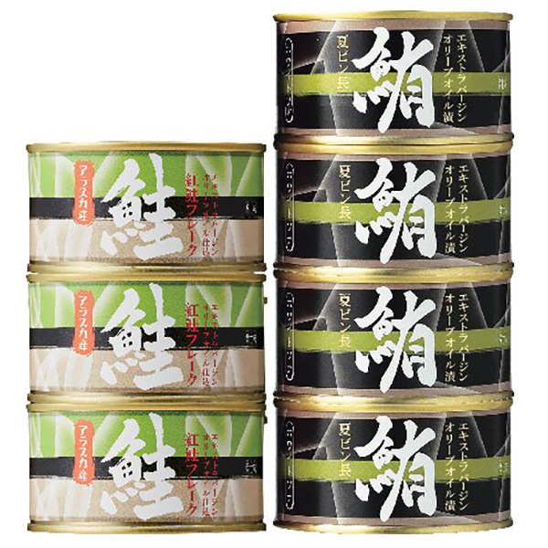 内容:アラスカ産紅鮭フレークエキストラバージンオリーブオイル仕込180g×3、夏ビン長鮪エキストラバージンオリーブオイル漬175g×4