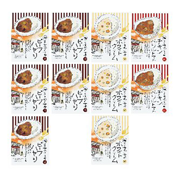 内容:ビーフハヤシ200g×5、ホワイトクリーム200g×3、チキンバジルトマト200g×2