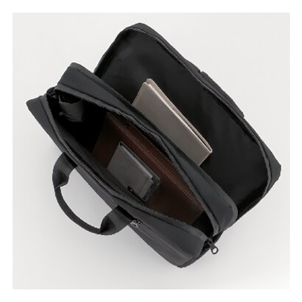 B4ファイルサイズ対応。開口部:ファスナー式、外部:ファスナーポケット1・パソコン用ファスナーポケット1、内部:ファスナーポケット1・面ファスナー式ポケット1・ペットボトルホルダー1、ショルダーベルト付(着脱可・長さ調節可)、キャリーサポーター付。ビジネスバッグ、リュックサック、ショルダーバッグになる3WAYタイプのビジネスバッグです。止水ファスナー付ですので雨が染み込みにくいです。