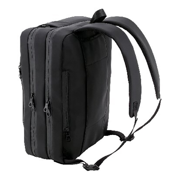 B4ファイルサイズ対応。開口部:ファスナー式、外部:ファスナーポケット1・パソコン用ファスナーポケット1、内部:ファスナーポケット1・面ファスナーポケット1・ペットボトルホルダー1、ショルダーベルト付(着脱可・長さ調節可)、キャリーサポーター付。ビジネスバッグ、リュックサック、ショルダーバッグになる3WAYタイプのビジネスバッグです。止水ファスナー付で、縫製部分以外は防水加工がしてあるので雨が染み込みにくいです。