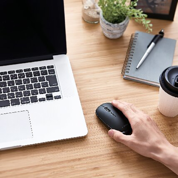 充電式。持ち運びしやすいサイズ感と操作性を兼ね備えたBluetooth(R)4.2薄型マウス。収納ケース付。