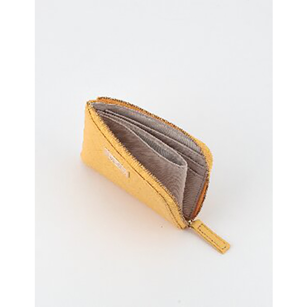 開口部:ファスナー式、内部:2室・オープン式小銭入・カード入6。空いたスペースに折りたたんだお札も収納可能。