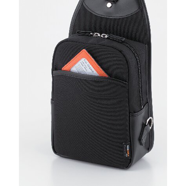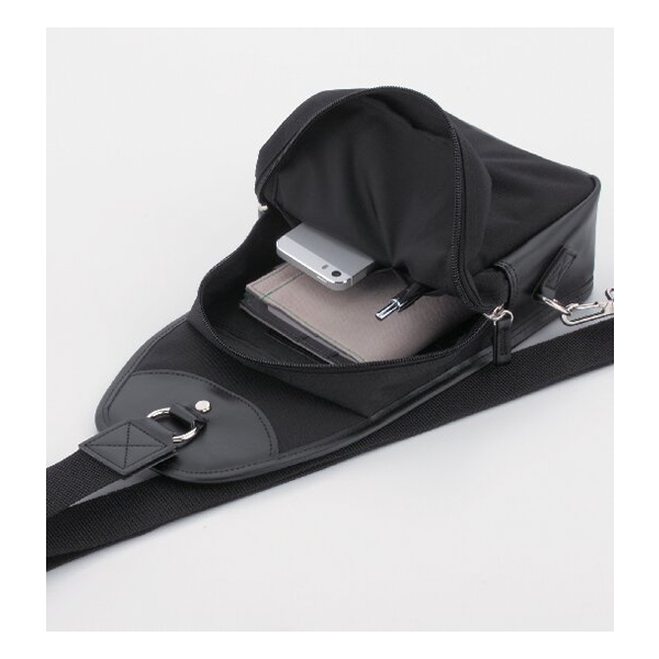 開口部:ファスナー式、外部:面ファスナーオープンポケット1、内部:オープンポケット1・ファスナーポケット1・ペン差し1、ショルダーベルト着脱不可(長さ調節可)。肩掛けショルダーは右肩左肩の両方に対応しています。