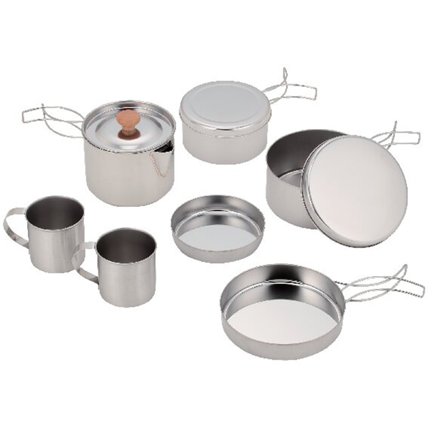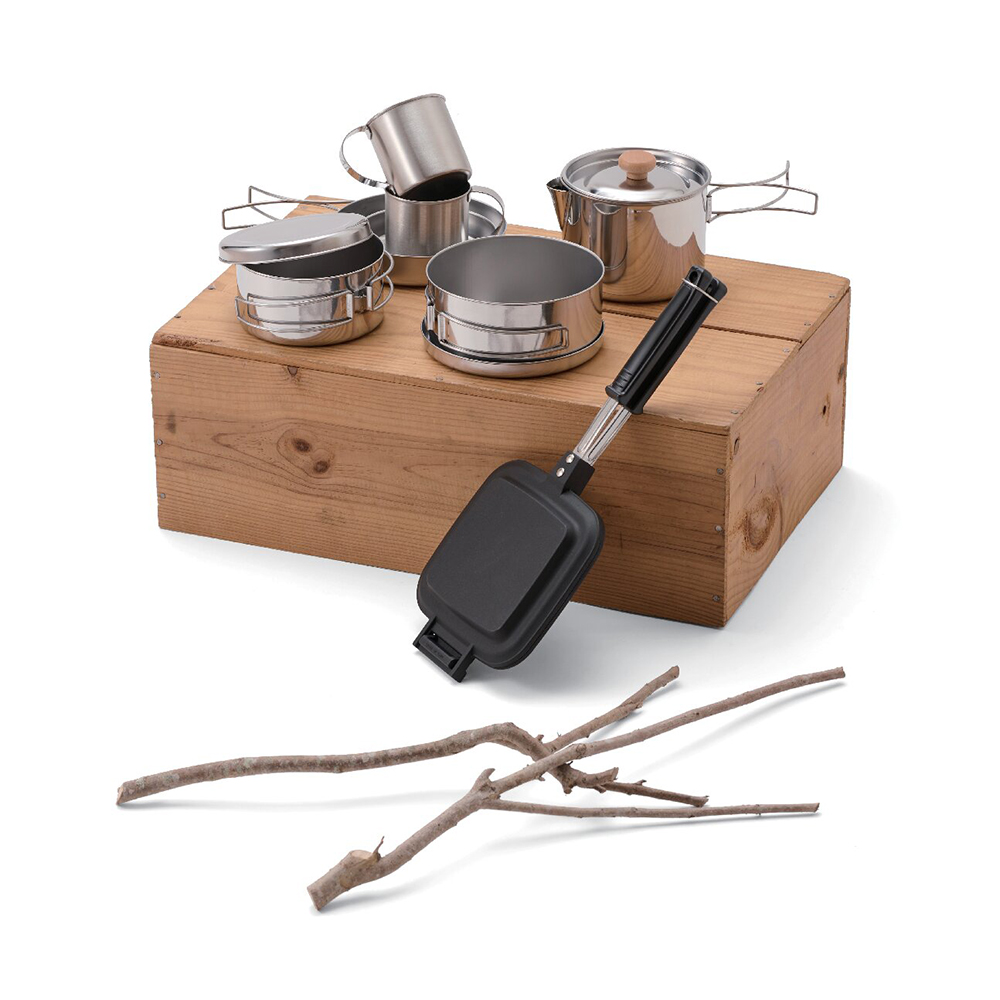 内容:フライパン、ミルクパン、ミルクパンカバー、ミルクパントレー、ソースパン、ソースパンカバー、キャンピングケトル各1、マグカップ2