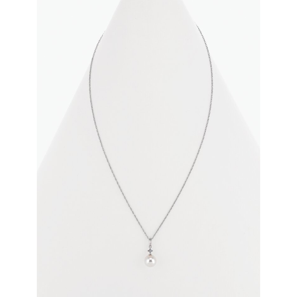 商品材料:トップ:ダイヤモンド(4石、0.04ct)、アコヤ真珠、プラチナ900、チェーン:シルバー925(ロジウムメッキ)