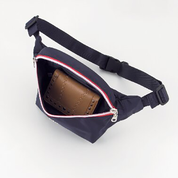 開口部:ファスナー式、内部:オープンポケット2、ショルダーベルト着脱不可(長さ調節可)。