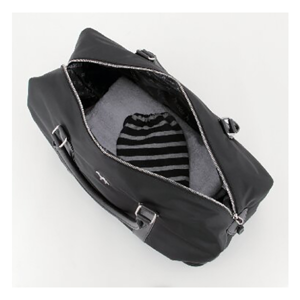 開口部:ファスナー式、内部:オープンポケット2、ファスナーポケット1、底鋲付。