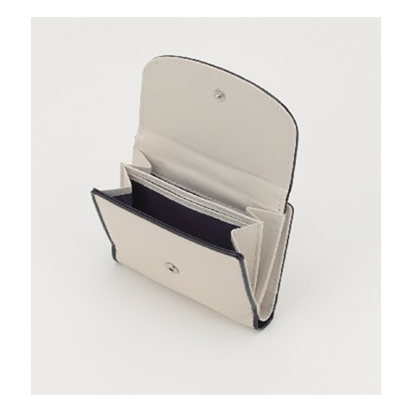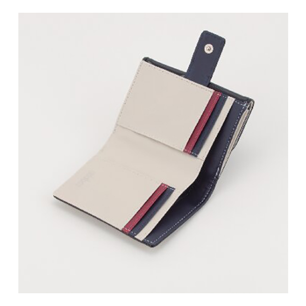 開口部:ホック式、外部:ホック式小銭入(仕切り1)、内部:札入1・カード入6・オープンポケット2。