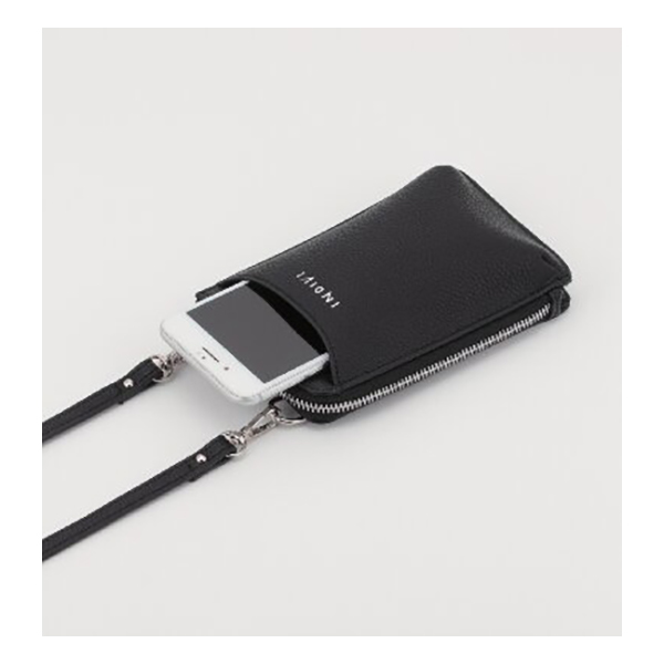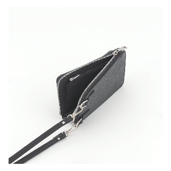 開口部:ファスナー式、外部:オープンポケット1、内部:カード入3・オープンポケット1・ファスナー式小銭入、ショルダーベルト付(着脱可・長さ調節不可)。