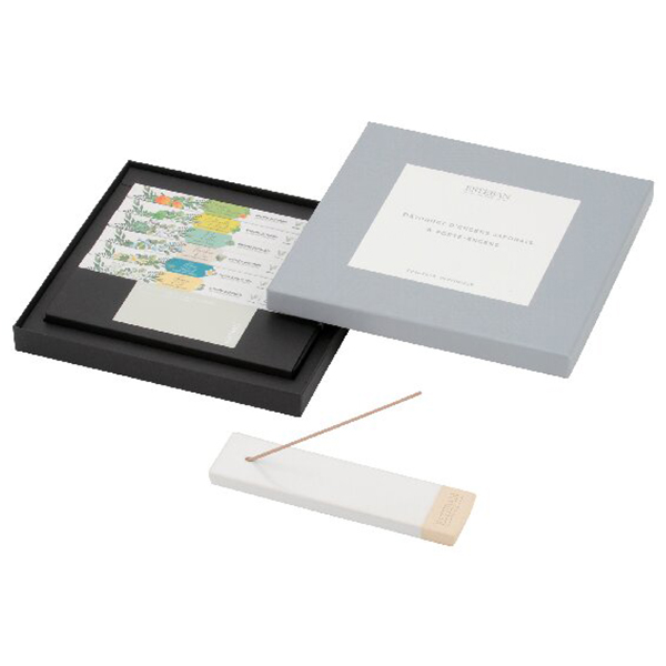 メーカー都合により、パッケージ・セット内容が変更になる場合がございます。予めご了承ください。フランスのエステバンで日本のお香は、繊細なスティックの形状からバトンショコラを想起させるような『Batonnet(バトネ)』と呼ばれています。ショコラトリーに並ぶバトンショコラのように、6種類のバトネ(お香)と、温かみのある質感にエステバンのロゴが刻印された香皿を組み合わせたセットです。