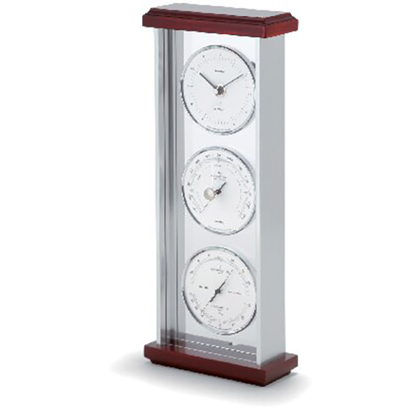 電源/単3乾電池×1付属(モニター用)、連続秒針。アルミニウムとウッドの組合せが美しい、温度・湿度計・気圧計・時計です。計器が90度回転し、縦長、横長どちらでも設置可能。気圧の変化をみてお天気予測もでき、実用的なインテリアです。