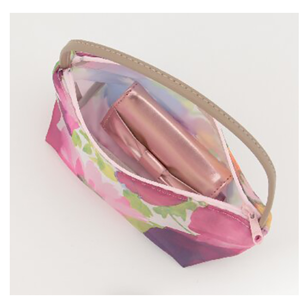 開口部:ファスナー式。化粧品や鍵などの小物を入れたり、手提付なので便利にご使用いただけます。