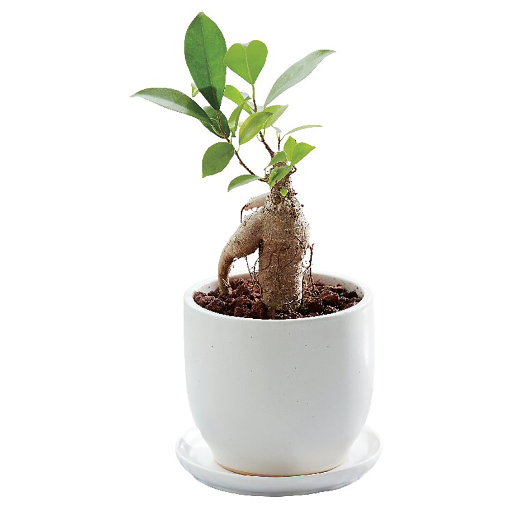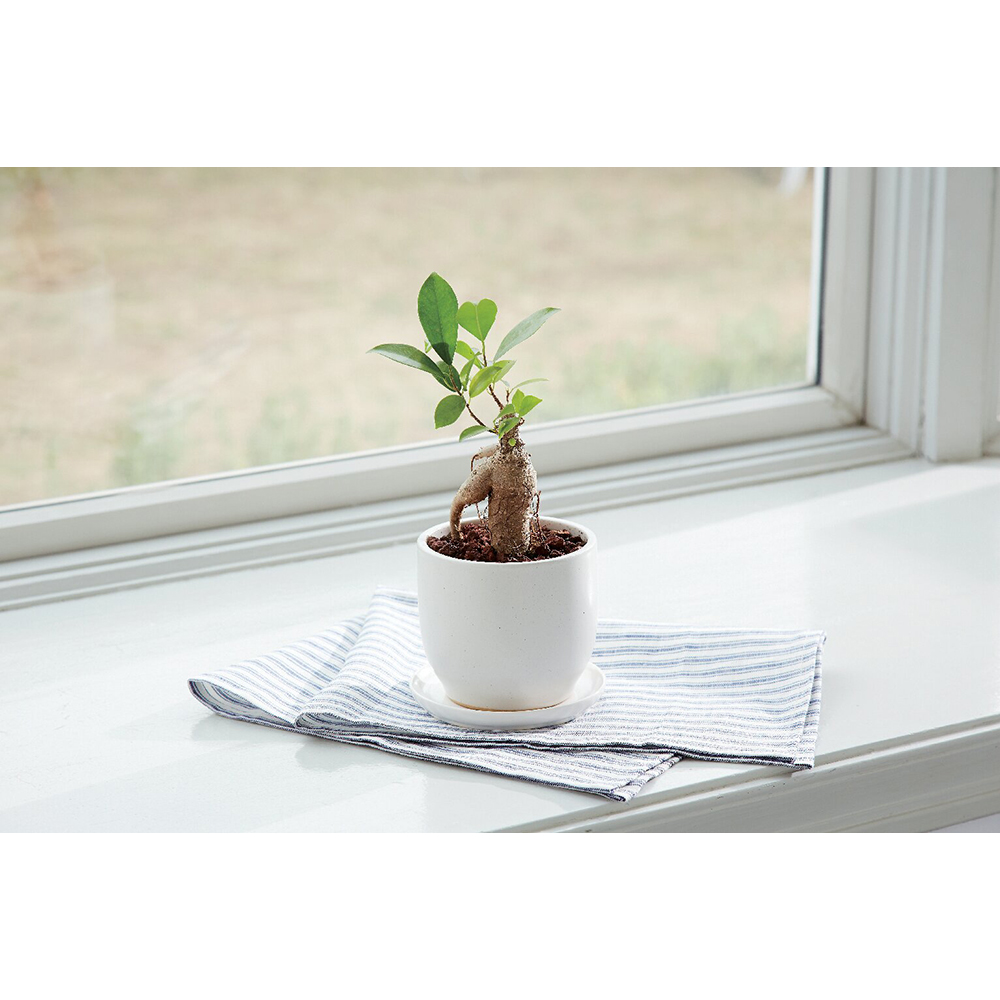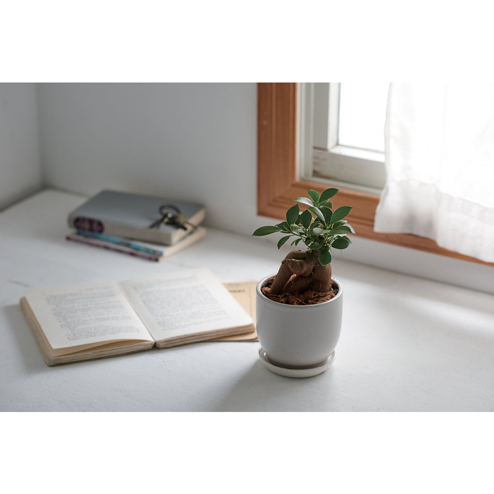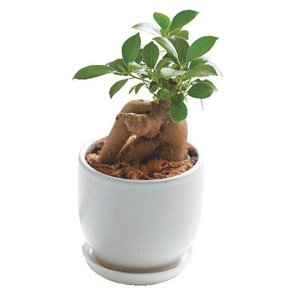 ガジュマルの形状は一つひとつ異なります。鉢の色・形が変わる場合がございます。受け皿付。