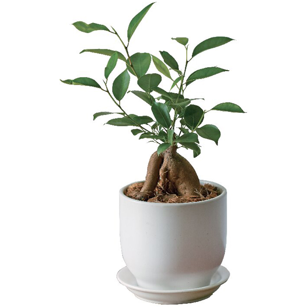 鉢の色・形は異なる場合がございます。ガジュマルの形状は一つひとつ異なります。受け皿付。