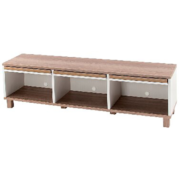 耐荷重:天板約40kg、棚約10kg。お客様組立品。ホワイト色にナチュラル色の天板がアクセントのローボード。