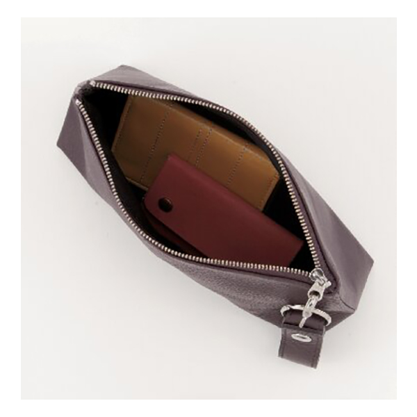 開口部:ファスナー式。ファスナーの引手部分が着脱可能なキーホルダー付ポーチです。