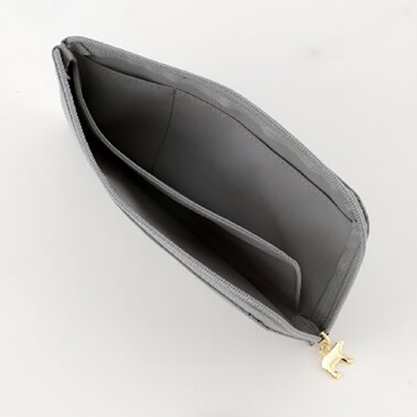 マスクポーチ/開口部:ファスナー式、内部:オープンポケット2・仕切り1、ティッシュポーチ/開口部:ファスナー式。背面:ティッシュ入れ。外出時に欠かせないマスクとティッシュを収納できる動物刺しゅうがかわいいポーチのセット。マスクポーチには仕切りがあるので予備のマスクも入れられます。