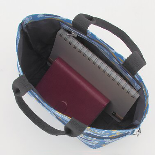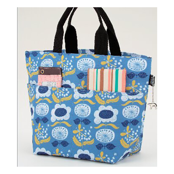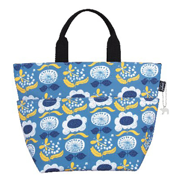 開口部:オープン式、外部:オープンポケット2、内部:ファスナーポケット1。北欧デザインの花柄がプリントされたミニトートバッグ。お弁当箱を入れるランチトートとしてはもちろん、お散歩やサブバッグとしても使えます。