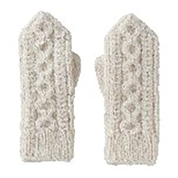 ミトンを初めて編む人にもわかりやすいキットセット。作品できあがりサイズ:約 タテ23×ヨコ9cm。製作途中の作品を入れるのに便利なプロジェクトバッグ付。製作にはハサミ、定規、縄編み針、とじ針が必要ですが、本セットには付属しておりません。