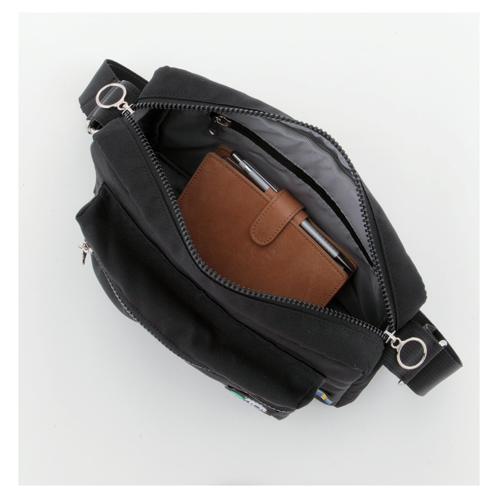 開口部:ファスナー式、外部:ファスナーポケット1、内部:ファスナーポケット1、ショルダーベルト着脱不可(長さ調節可)。