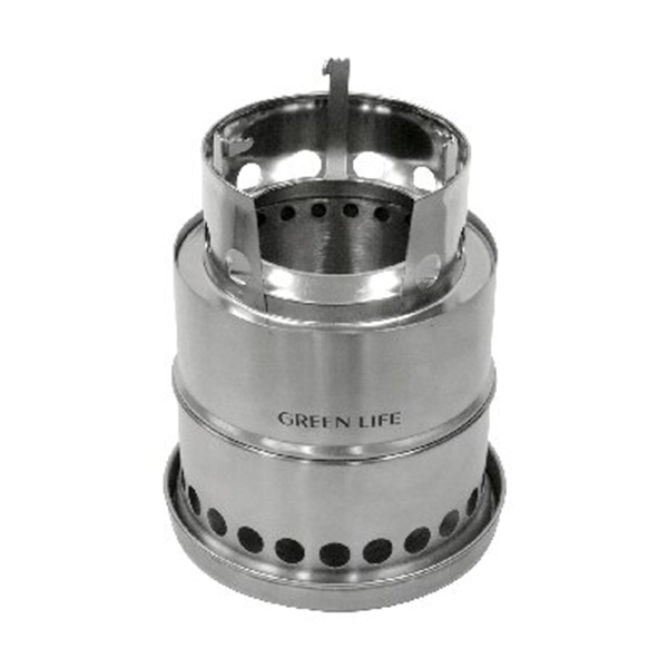 コンパクトストーブは丈夫でサビに強いステンレス製で高火力、二次燃焼効率の良いアウトドアストーブです。コンパクトストーブと付属のスタンドを合わせて使用する事が出来ます。クッカースタンド付。
