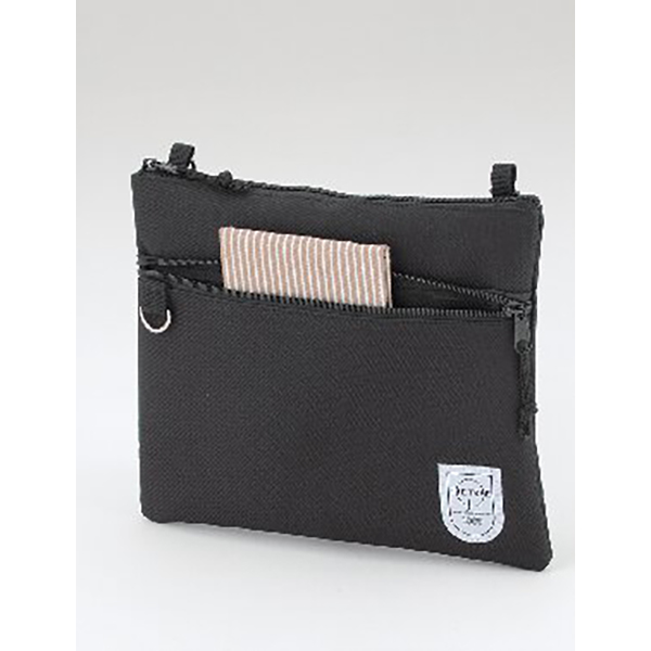 開口部:ファスナー式、外部:ファスナーポケット1、内部:オープンポケット1。ショルダーベルト着脱可(長さ調節可)。スマートフォンや小物入れに便利なサコッシュです。