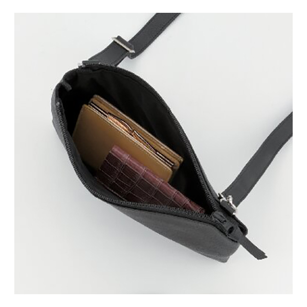 開口部:ファスナー式、ショルダーベルト付(着脱可・長さ調節可)。