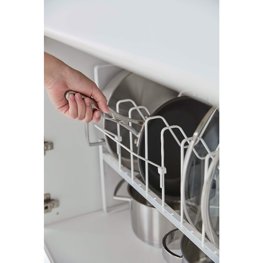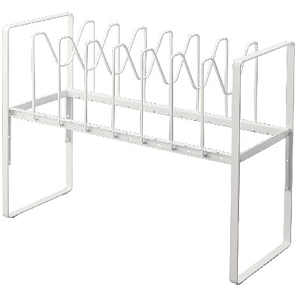 シンク下高さ調整鍋蓋&フライパン収納ラック2段(ホワイト)