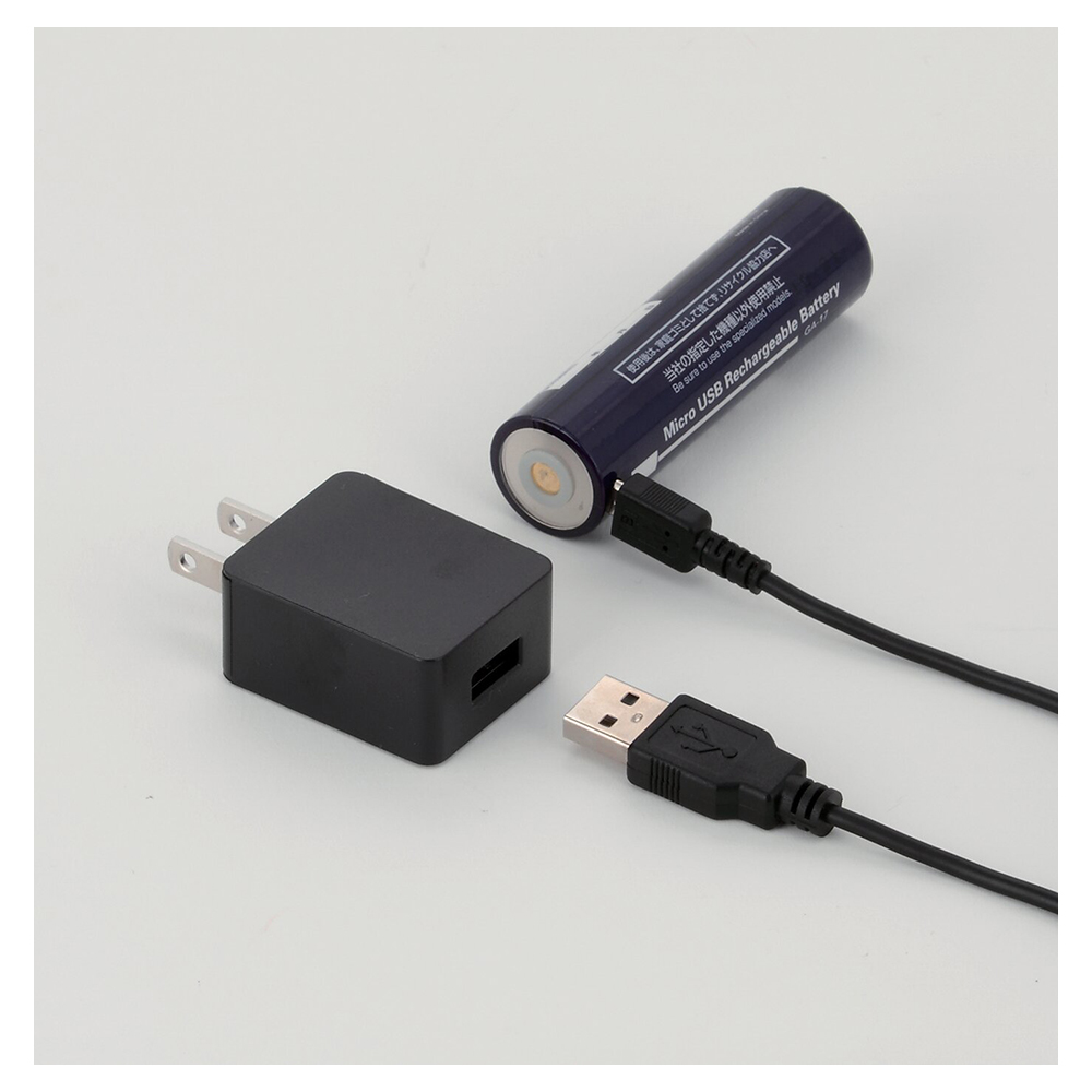 電源/単4乾電池×3(別売)又は充電式。ロータリースイッチで無段階調光可能。耐塵・耐水・100m防水(IP66及びIP68準拠)、落下耐久約2m。明るさ最大約1200ルーメン。点灯時間:約3時間。USBケーブル・ACアダプター付属。