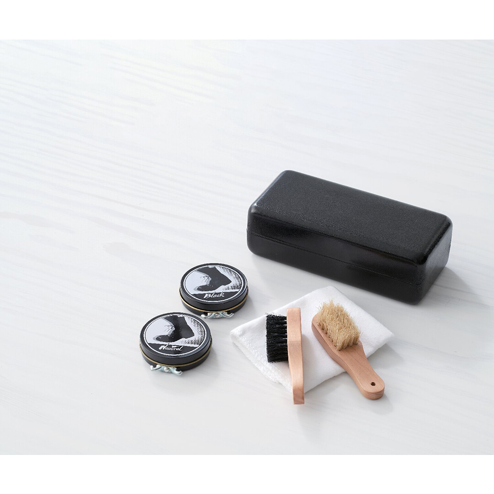 商品サイズ:ケース:約高さ5×幅16×奥行7cm、質量約178g、クリーム:容量約15g、質量約26g、布:約タテ20×ヨコ20cm、ブラシ:約高さ2.7×幅2.8×奥行9cm、質量約16g
