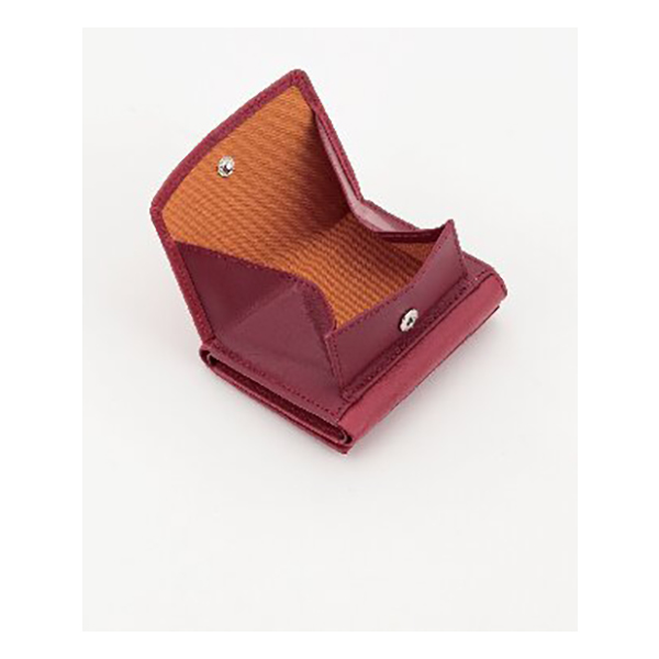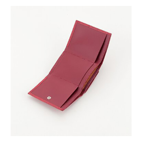 開口部:ホック式、外部:ホック式小銭入、内部:札入1・カード入3。