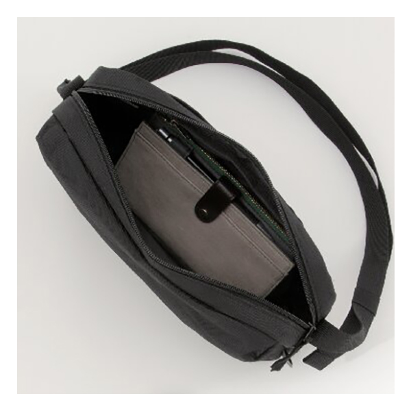 開口部:ファスナー式、外部:オープンポケット1・ファスナーポケット1、内部:オープンポケット1、ショルダーベルト着脱不可(長さ調節可)。肩掛け、斜め掛け、ウエストポーチの3通りの持ち方ができます。