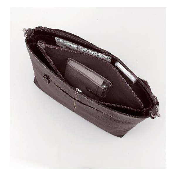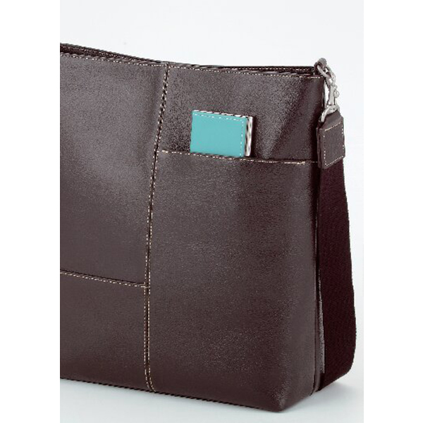 開口部:マグネット式、外部:オープンポケット1・ファスナーポケット1、内部:オープンポケット2・ファスナーポケット1・仕切りファスナーポケット1、ショルダーベルト付(着脱可・長さ調節可)。