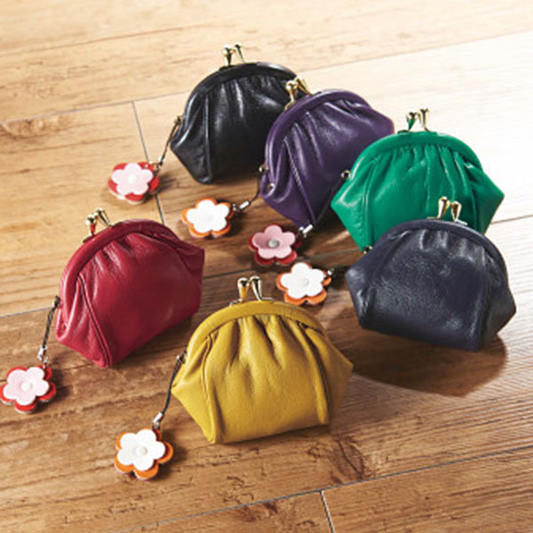 実用的なサイズのガマ口。ひとつあると便利です。かわいい花柄のストラップ付きです。