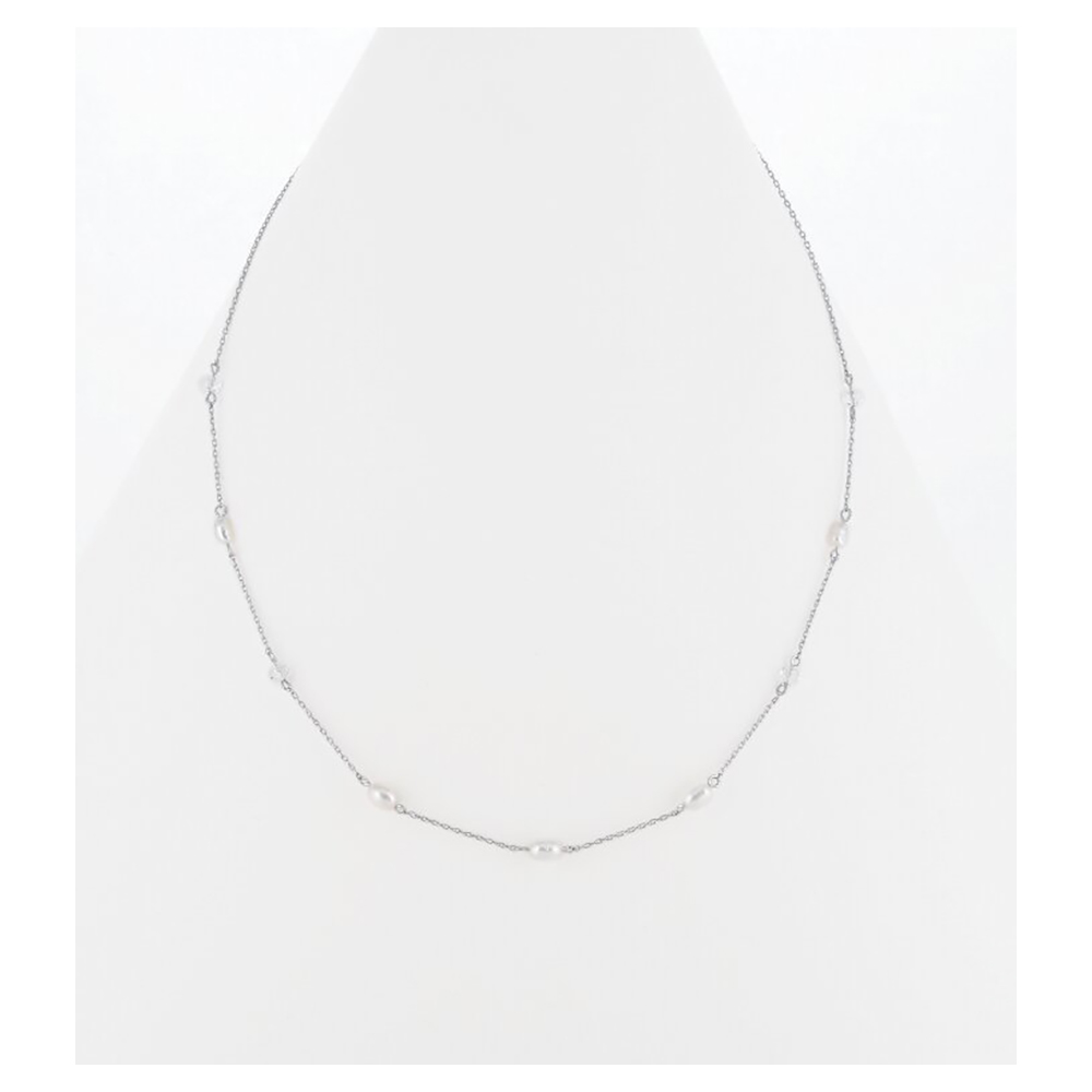 淡水パールとカットガラスをあしらったショートネックレス。淡水パールは天然素材の為、サイズ、形状、色味に個体差があります。