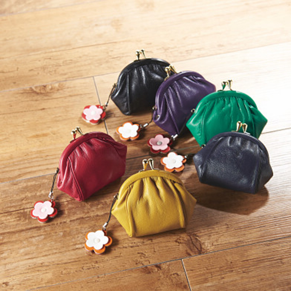 実用的なサイズのガマ口。ひとつあると便利です。かわいい花柄のストラップ付きです。