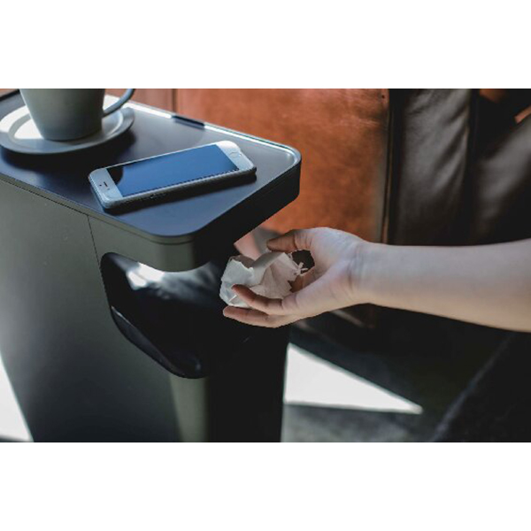 ゴミ箱上のスペースをテーブルにした、スタイリッシュなデザインのダストボックス+テーブル。蓋の開閉をする必要がないのでゴミをスムーズに捨てられます。シンプルなデザインなのでリビングや寝室など置く場所を選びません。背面には取っ手が付いているので、掃除の際の移動も簡単。ハンドル付きの袋留めリングなので、袋の入れ替えもスムーズです。
