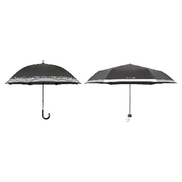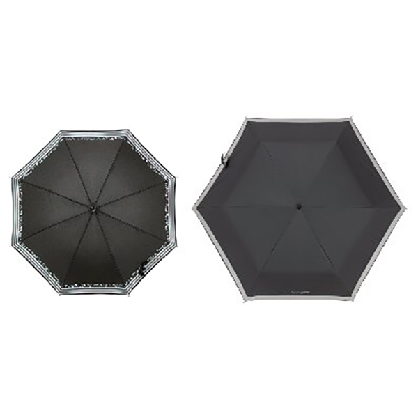 手開き式。晴雨兼用(UVカット・撥水加工)のミニ傘とパラソルのセット。ミニ傘はシルバーコーティング加工で日差しもシャットアウト。