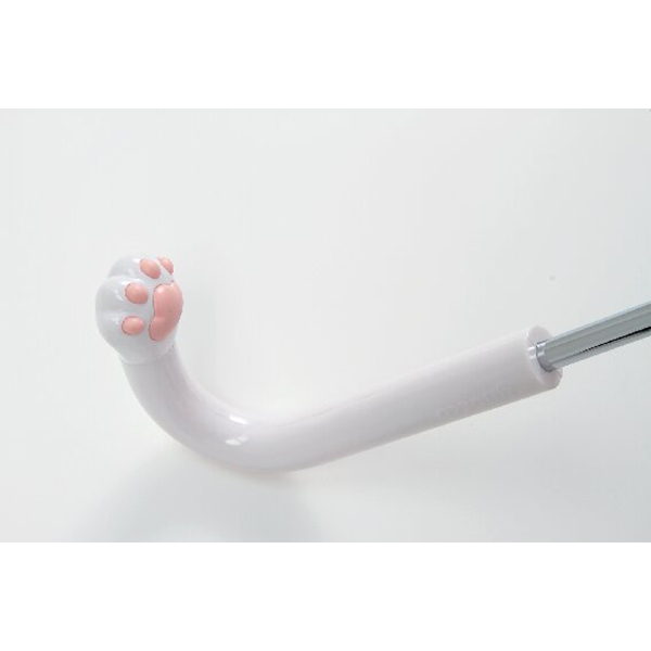 ワンタッチ式。しっかり雨風を凌いでくれる、ドーム型の可愛いフォルム。傘骨にグラスファイバーを使用し、風にも強い構造。持ち手部分は猫の肉球をあしらった滑り止め付きです。