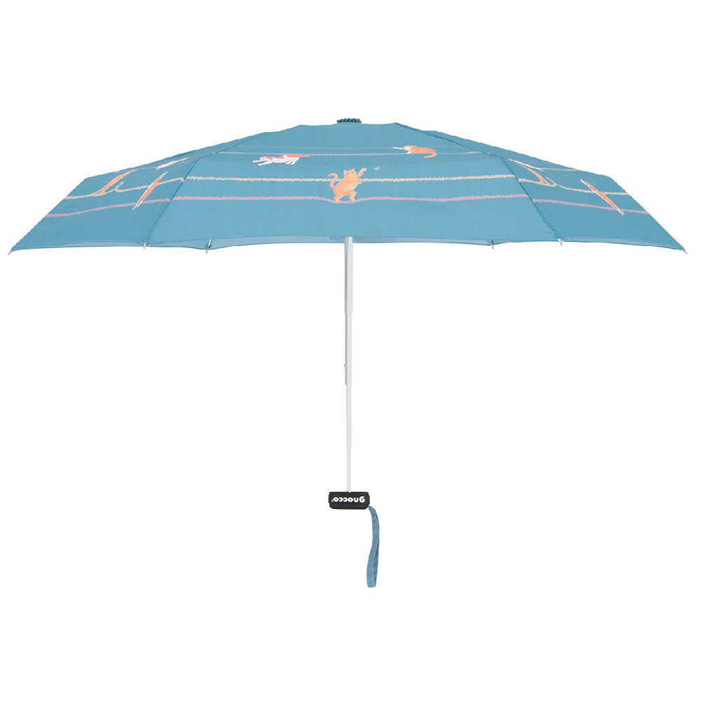ニョッコ 折りたたみ傘 ボーダー遊び猫(サックスブルー)
