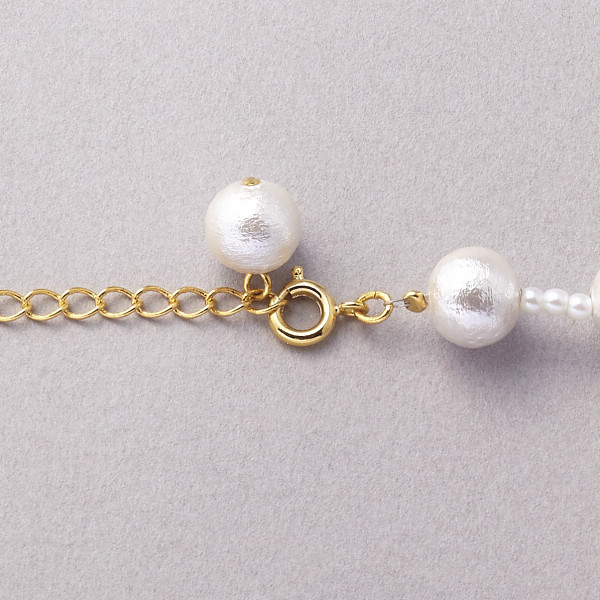 カジュアルシーンに重宝するコットンパールのネックレス。