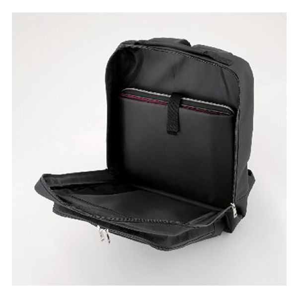 B4ファイルサイズ対応。開口部:ダブルファスナー式、外部:ダブルファスナーポケット1(内部:オープンポケット2・メッシュオープンポケット2)、ファスナーポケット1、内部:ファスナーポケット1・面ファスナー式ポケット1。