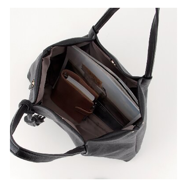 開口部:マグネット式、外部:ファスナーポケット1、内部:オープンポケット2・ファスナーポケット1。