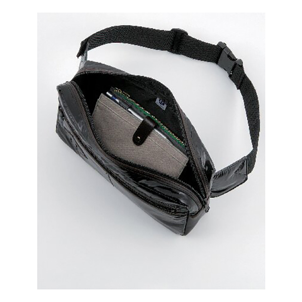 開口部:ファスナー式、外部:ファスナーポケット1、ウエストベルト着脱不可(長さ調節可)。