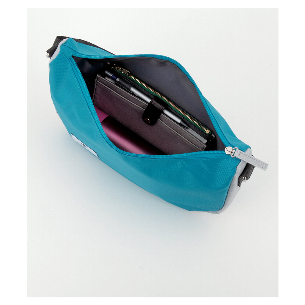 開口部:ファスナー式、ショルダーベルト着脱不可(長さ調節可)。スポーティーなイメージのショルダーバッグです。