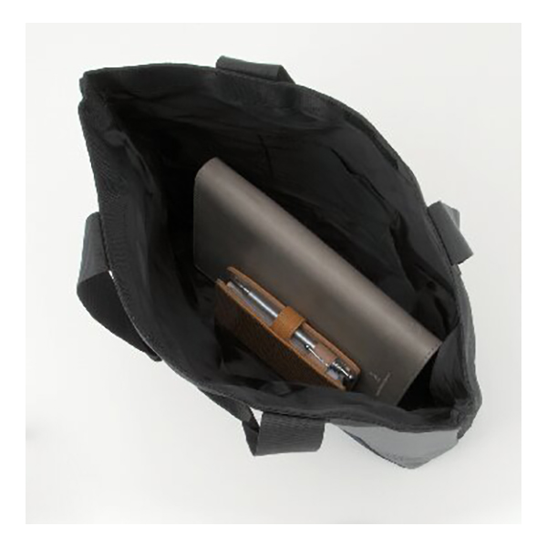 開口部:面ファスナー式、内部:オープンポケット2。色の切り替えのデザインが印象的なトートバッグです。